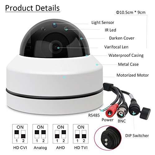 [Videocamera CCTV 4 in 1 AHD / TVI / CVI / CVBS] La telecamera di sicurezza è compatibile con DVR da 5MP e 4MP, può essere controllata tramite cavo coassiale e cavo RS485. Aggiornato con DIP Switcher per selezionare AHD / TVI / CVI / CVBS in base ai videoregistratori digitali esistenti.