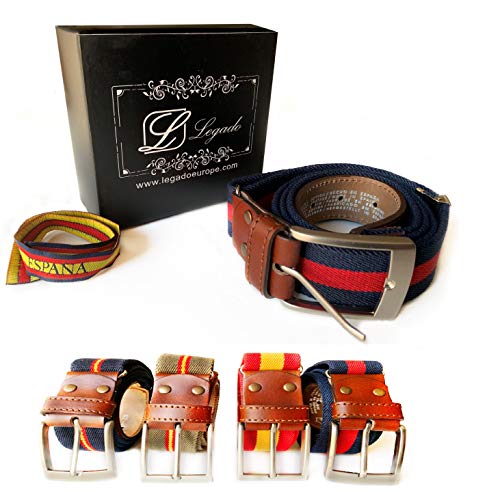 LEGADO Cintura uomo e bracciale bandiera spagnola, cintura elastica con pelle marrone, pelle Ubrique come i nostri portafogli e accessori., Rosso marino, Taglia unica