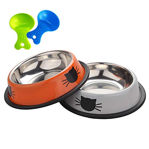 Legendog Ciotole Gatto, 2 Pezzi Scodella per Gatto in Acciaio Inox Anti Schling per Gatti (Arancione/Grigio)