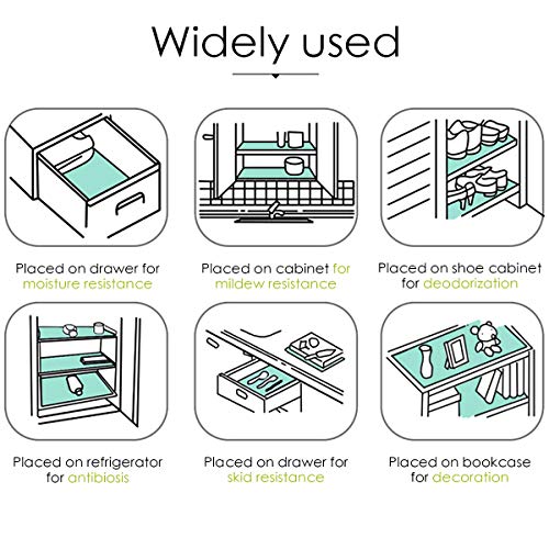 Multi Function Liner: La fodera credenza di molteplici funzioni aiuta a proteggere i mobili ed elettrodomestici da danni e mantenere igieniche assorbendo e decomposizione degli odori, frenare la riproduzione dei batteri e prevenire l'umidità e la polvere che scorre dal basso verso l'alto, l'olio, anti slittamento, alleviare lo stress e l'isolamento termico.