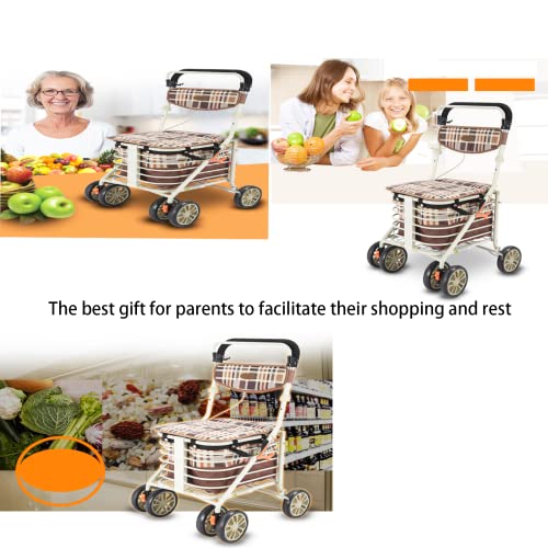 Leggero Pieghevole 4 Ruote Deambulatore Camminatore con Sedile Imbottito, Freni Bloccabili Altezza Regolabile,Brakelever
