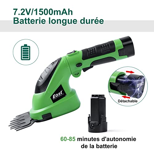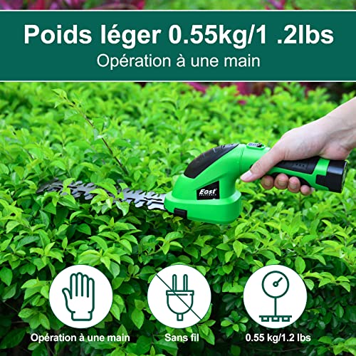 Leggero Tagliasiepi a batteria, 7.2V Forbici Tagliaerba a Batteria Tagliasiepi Elettrico al Litio 1500mAh, Facile e veloce da usare con lunghezza di taglio 170mm e larghezza di taglio 120mm