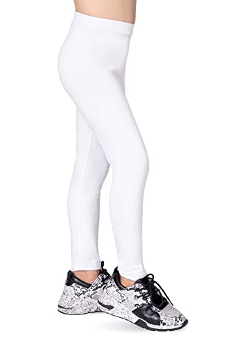 Leggings NYS in Cotone per Bambini Lunghezza Totale alla Caviglia Ragazze Leggings Lunghi Lisci e Solidi Unisex Bianco, Taglia 128 cm (8 Anni)
