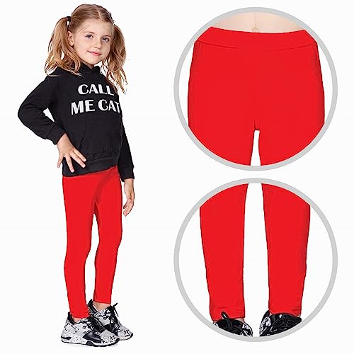 Leggings NYS in Cotone per Bambini Lunghezza Totale alla Caviglia Ragazze Leggings Lunghi Tinta Unita Unisex Rosso, Taglia 140 cm (10 Anni)