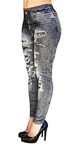 Leggings Donna - Pantaloni - Effetto Jeans Strappato - Pantacollant - Elasticizzati - Taglia Unica - Nero - Idea Regalo Natale e Compleanno