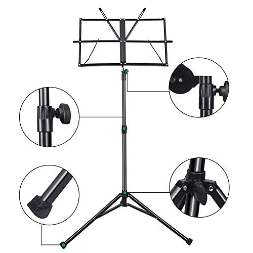 Leggio Musicale, Mugig Pieghevole Leggio con Borsa da Viaggio, Supporto Spartiti Robusto, Portatile, Altezza Regoabile, Carico Massimo 1,5 kg, Adatto per i Viaggi e Sistemabile Nel Ripostiglio
