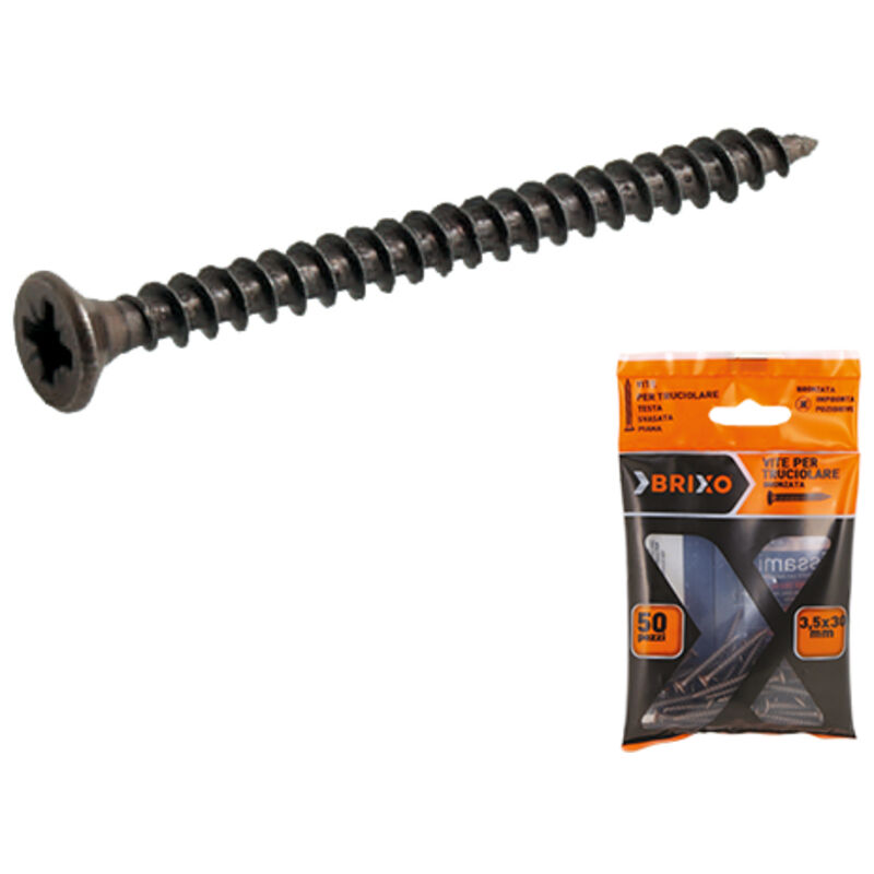 Viti legno Brixo bronzate TPS Vite bronzata a testa svasata piana per truciolare, interamente filettata con impronta pozidrive. Ø 3x20 mm. - Conf. 50 pz.