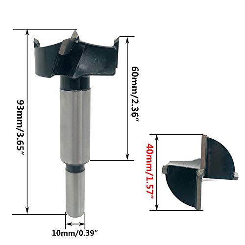 Punta in carburo di tungsteno da 40 mm, corpo in acciaio al carbonio, punta elicoidale Forstner Elevata durezza e resistenza al calore, l'alta temperatura generata durante la perforazione non lo deformerà, anche resistente all'usura, può essere utilizzata per molto tempo.