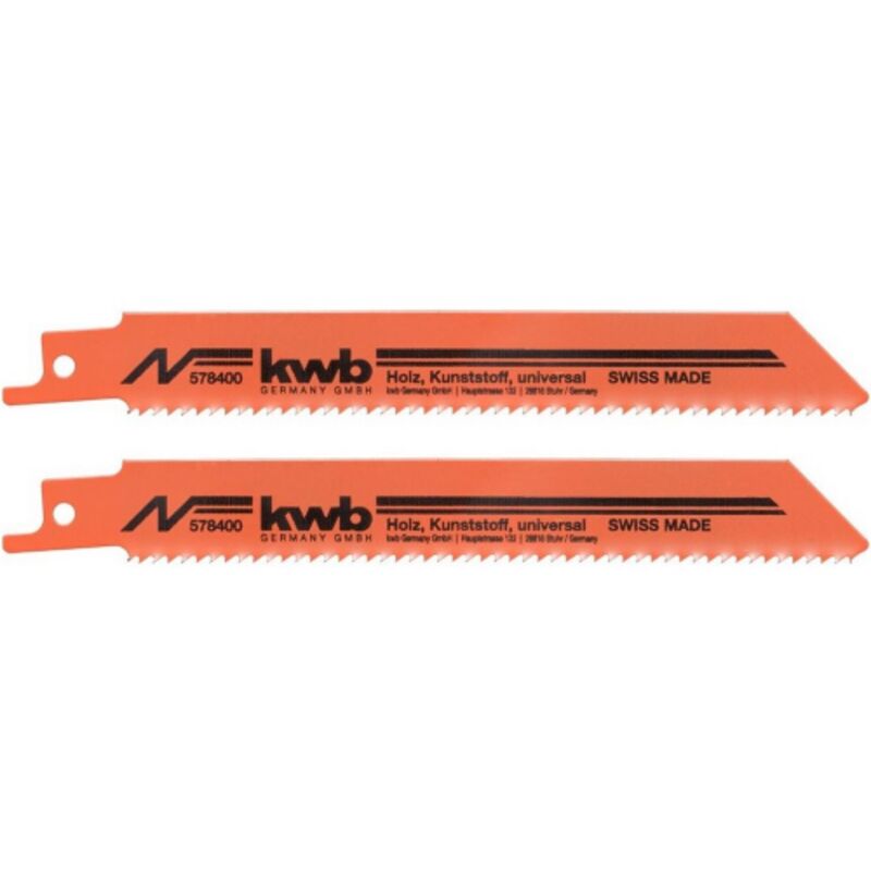 Kwb 578400. Tipo di prodotto: Lama per sega universale, Adatto per materiali: Metallo, Cartongesso, Acciaio inossidabile, Legno, Materiale lama: Acciaio al carbonio (HCS). Lunghezza di lavoro: 13 cm, Spaziatura dei denti della lama: 2,5 mm. Lunghezza totale: 15,3 cm. Quantità per pacco: 2 pz
