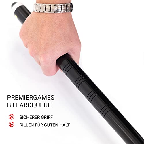 4 stecche da biliardo con 10 leve di ricambio e un supporto da parete per quattro stecche