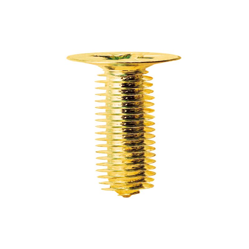 Modello 05052 in acciaio ottonato per pannelli di legno truciolare conglomerato. Taglio a croce PZ. Testa svasata piana. Diametro 4.5 mm Lunghezza 55 mm