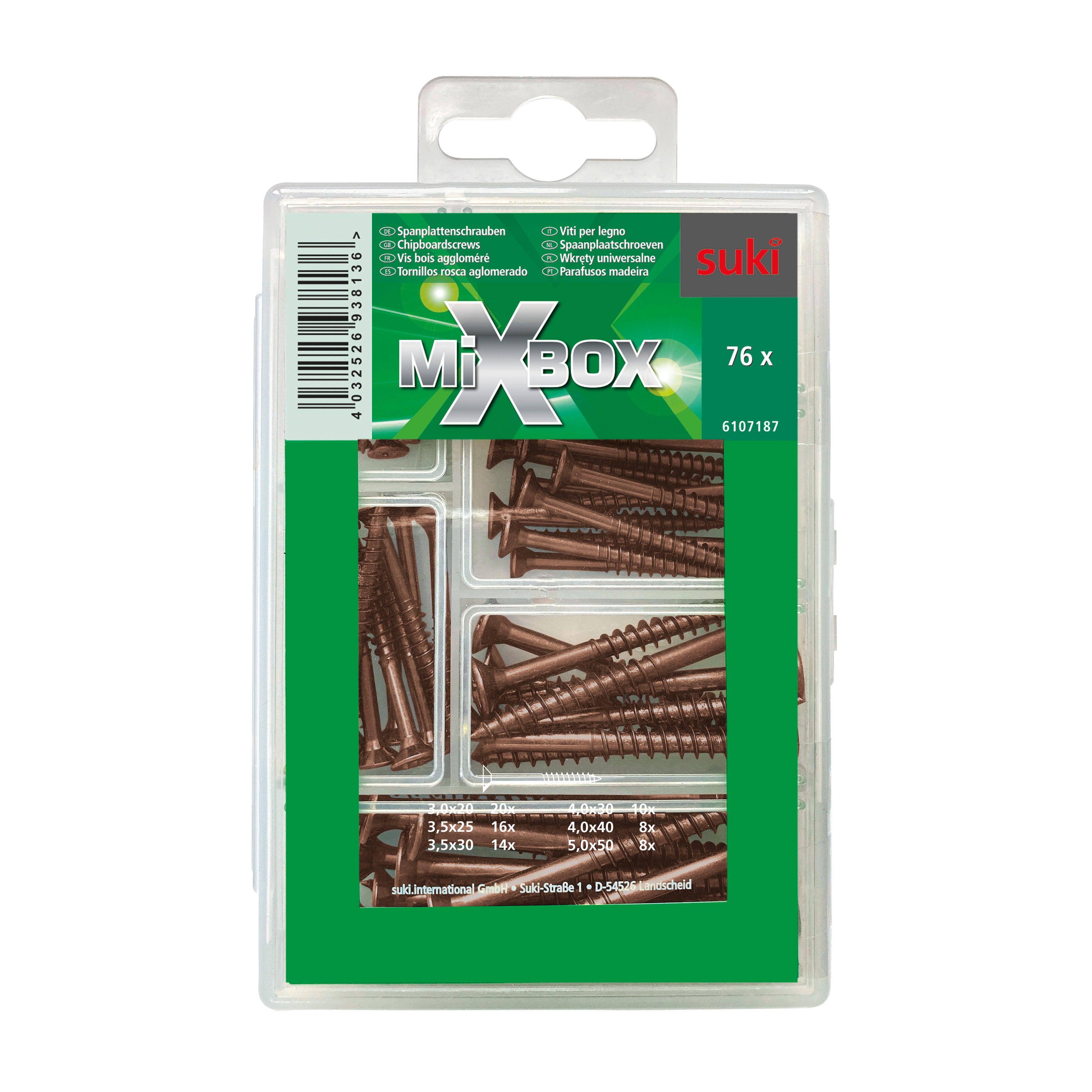 Mini mixbox di viti per legno bronzate, confezione da 76 pezzi