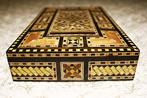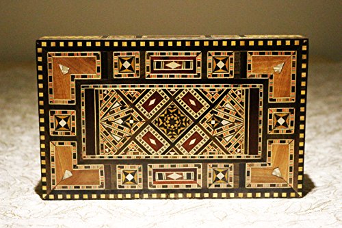 Completamente realizzato a mano in legno di noce, con mosaico in quale diversi alberi.Questa scatola è un tesoro dei tradizionali artigianato, come è da secoli in damasco curata.