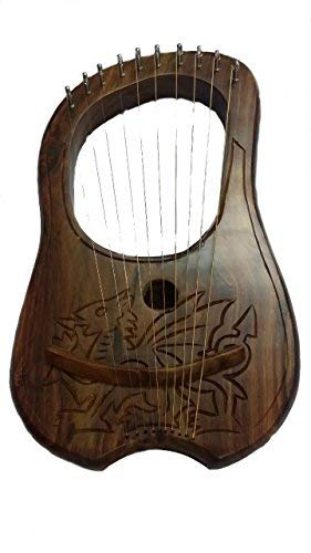 Arpa lira in legno Sheesham con drago celtico/gallese intagliato