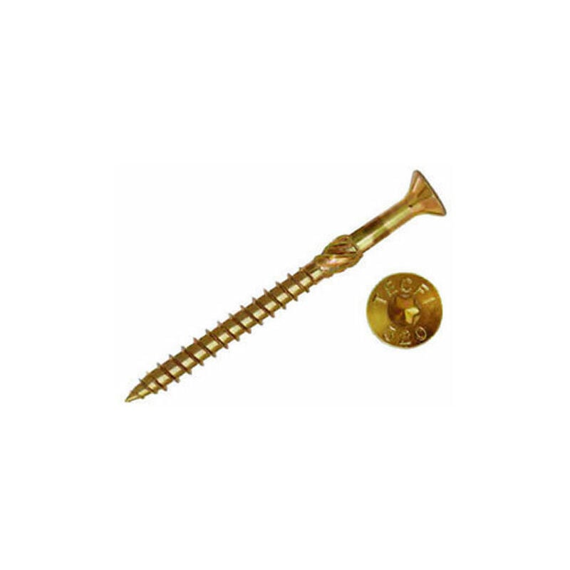 VITI TSP TORX 8X400(PZ.10) Vite TSP impronta TORX per truciolare, in acciaio cementato zincata gialla, dotata di filetto speciale Brevettato TECFI ed alesatore. Le particolari caratteristiche di cui è dotata questa vite consentono un veloce, pratico e sicuro serraggio anche nei legni lamellari più duri.Per Ø mm.8 Torx 40