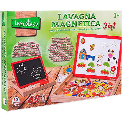 Legnoland- Lavagna Legno Magnetica con Magneti e Gessi, 65 Pezzi, 37764
