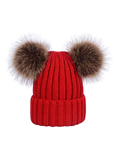 Legou Berretto da Donna in Maglia Grossa con Orecchie a Doppio Pompon, Rosso, Taglia Unica