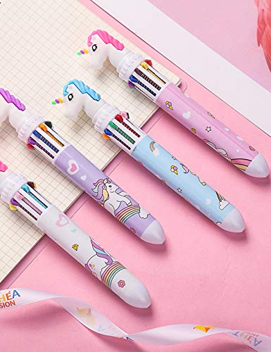Legou - Confezione da 10 penne a sfera retrattili 4 in 1, multicolore Unicorno viola.