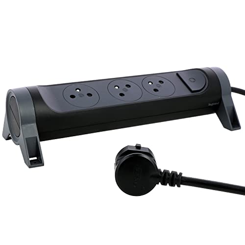 Legrand 049444 - Prolunga multipresa girevole con 3 prese di corrente, superficie e interruttore con cavo da 1,5 m, nero e grigio scuro