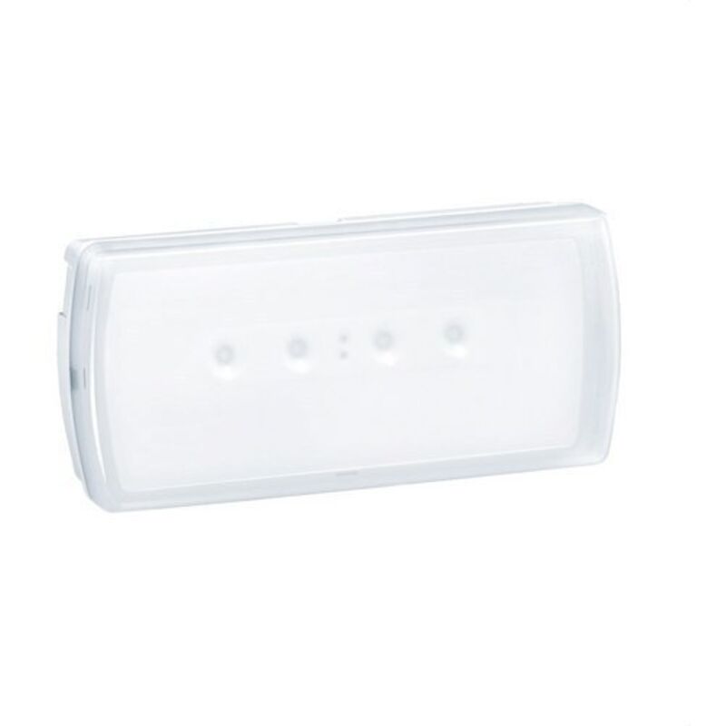 Lampada di emergenza LED AUTOTEST - Non permanente (NP) - 100 lumen - Autonomia 1 ora - LED - Batteria Ni-Cd - La lampada effettua un test automatico settimanale per verificare lo stato della lampada e un test automatico trimestrale per verificare lo stato della batteria. - Comunica il suo stato tramite i LED (verde e giallo) di segnalazione.