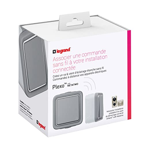 Legrand - Interruttore senza fili impermeabile per installazione collegata Plexo con Netatmo completo sporgente grigio
