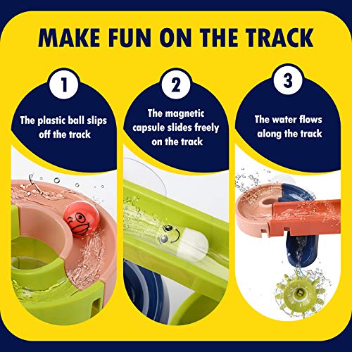 【Giocattolo interattivo per bambini】 Il giocattolo da bagno fai-da-te ha un'orbita di aspirazione con il rullo, la palla correrà seguendo l'orbita, renderà il tempo del bagno dei tuoi bambini interattivo e divertente, ottimi giocattoli per far giocare i bambini nella vasca da bagno o in piscina.