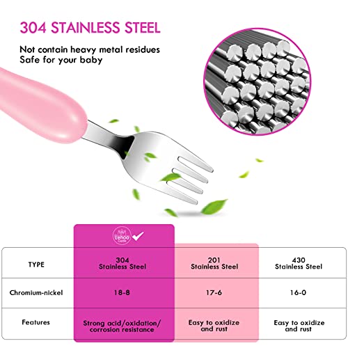 【Progettato per la sicurezza della bocca dei bambini】 - Le stoviglie per bambini Lehoo Castle sono molto lucide, il bordo del cucchiaio è lucido e liscio e la forchetta ha un design ad angolo ottuso per evitare che il bambino si gratti la bocca quando mangia.