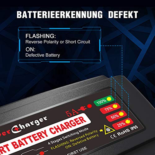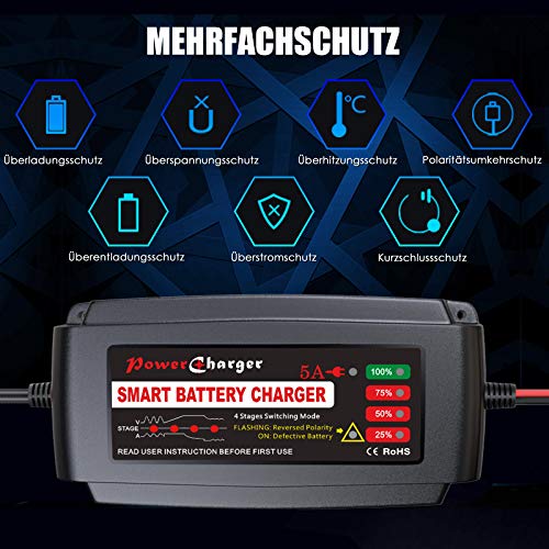 LEICESTERCN Caricabatteria per Auto 12V Caricabatteria per Auto Completamente Automatico Caricabatteria per Auto Dispositivo cosciente per Auto Car Motorcycle (12V 5A) -MOURT