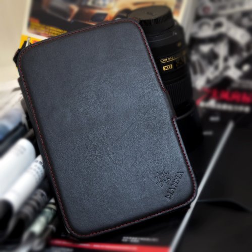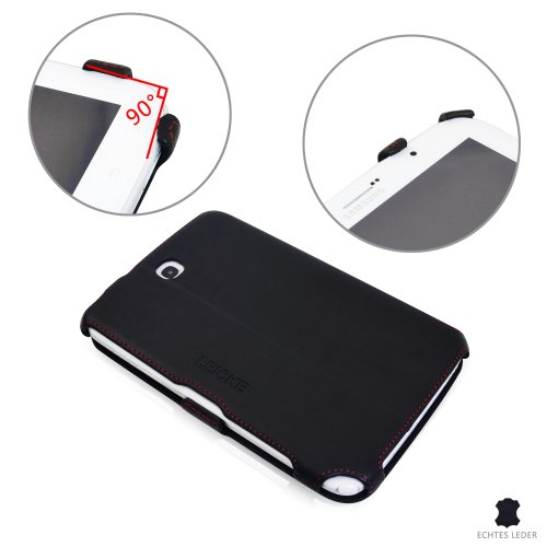 LEICKE Manna - Pregiata custodia protettiva per Samsung Galaxy Note 8.0 N5100 N5110 n Vera Pelle Nera con cuciture rosse rifinite a mano - Funzione sostegno e impugnatura speciale Embrace