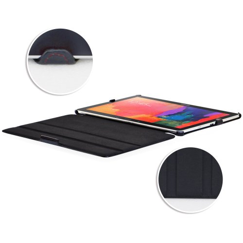 LEICKE MANNA - Pregiata custodia protettiva per Samsung Galaxy Tab Pro 12.2 SM-T 900 Wifi SM-T 905 - Samsung Galaxy Note Pro 12.2 (Versione 2014) in EcoPelle Premium Nera con cuciture rifinite a mano - Funzione sostegno Easy Stand e Sleep-On