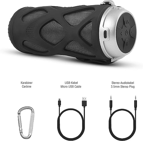 ★ Pacchetto sonoro - 10 W! Nonostante le dimensioni compatte, l'altoparlante convince con un suono nitido e alti chiari - proprio quello che serve per arrivare fuori dai rumori ambientali. Avete molte possibilità di riproduzione della musica - a scelta tra Bluetooth, uno slot per schede SD/TF integrato (basta inserire la scheda SD con i MP3 preferiti. ), la funzione radio FM o l'ingresso AUX con cui l'altoparlante può essere utilizzato come espansione, ad esempio per il vostro computer portatile.