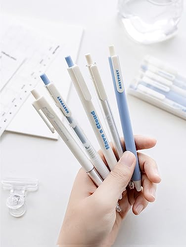 Contenuto della confezione: queste penne per diario contengono 5 penne gel di fascia alta (penna: penna gel 0,5 mm x 3, penna gel 0,38 mm x 2). Sono grandi penne retrattili per materiale scolastico estetico, forniture per ufficio, diario, appunti e pianificazione.