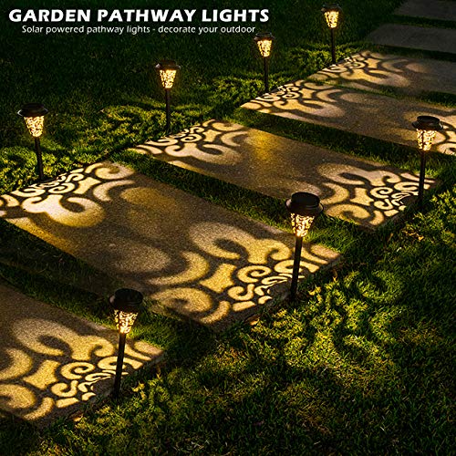 【Pannello solare aggiornato】 Le luci di via solare LeiDrail di nuova concezione sono realizzate in metallo di colore nero. Le luci a LED bianche calde e i motivi unici apportano effetti speciali al percorso di notte. (Premere l'interruttore "ON" prima dell'uso.)