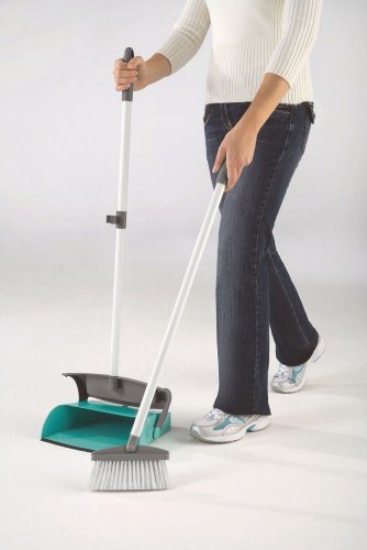 Leifheit 59117 Professional Scopa con Paletta a Chiusura Automatica, Bianco/Grigio/Turchese