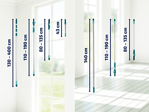 Confezione - Leifheit manico telescopico alluminio 135 cm con Click System, estensibile da 75 a 135 cm, testina anti-scivolo, foro di aggancio ruotabile a 360°, articolo numero 56673