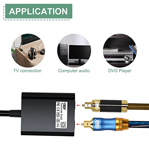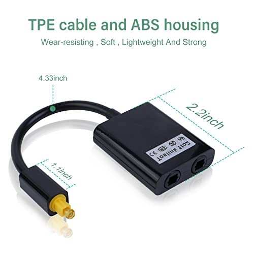 Adattatore ottico 1 in 2 out: collegare un audio ottico digitale e dividerlo in due diversi dispositivi di ricezione, ad esempio ricevitori A/V e TV. Questo adattatore è stato progettato per dividere un singolo segnale in due. Perfetto per collegare il lettore CD, il lettore DVD o qualsiasi altra sorgente audio digitale al ricevitore e al registratore.