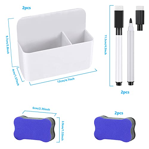 ✿ 【Incluso】:porta marcatore include 2 scatole portaoggetti, 2 gomme per lavagna bianca, 2 pennarelli. Un solo set è sufficiente per soddisfare le tue esigenze. La dimensione del portapenne magnetico è 12x10x4 cm, progettata in modo intelligente e facile da trasportare.