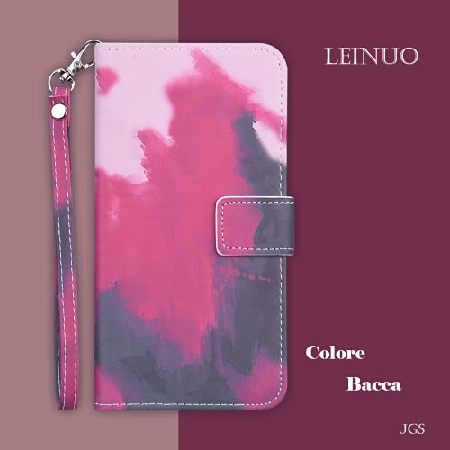 LEINUO Custodia per Cellulare Apple iPhone 7/iPhone 8/iPhone SE (2020) (4.7") Custodia Cover Colori a Contrasto Sfumato, (con Porta Carte Portafoglio Supporto Pieghevole),Berry Color