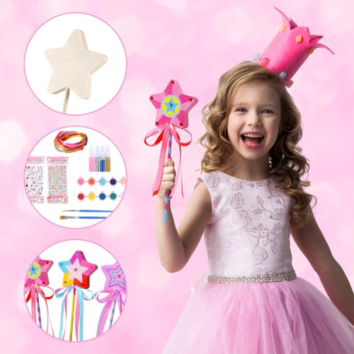 Leiptes Kit Creativi per Bambini in Legno 12 Pezzi Principessa Bacchetta per Stella Fai da Te Bacchette Magiche in Legno, Principessa Giocattoli da Disegno Compleanno di Regalo per Ragazze
