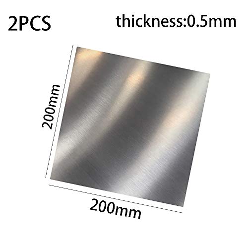 LEISHENT 2 Pezzi Lastra in Lamiera d'Acciaio Inox Spessore da 0,5 Mm A 1 Mm, Lunghezza 200 Mm, Larghezza 200 Mm,0.5x200x200mm