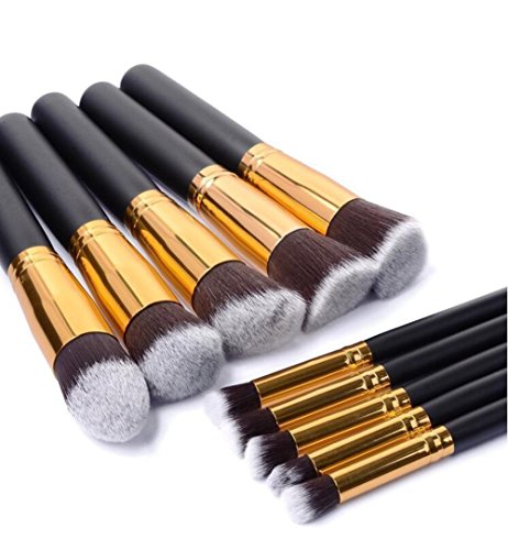 Leisial 10pcs Professional Pennello Make Up Set di pennelli Pennello Cosmetico Set ombretto Make Up Set di pennelli, Nero e Oro