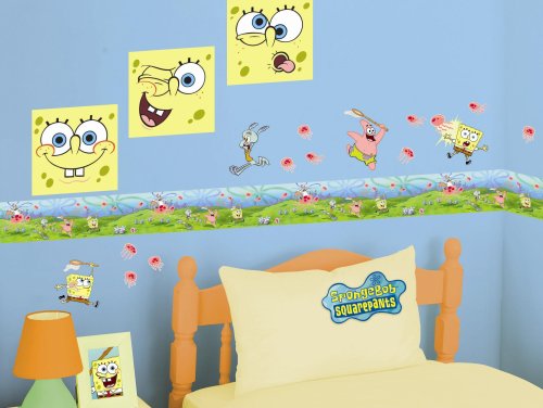 Leisurebrands - 3 Decorazioni adesive per Parete, Motivo Spongebob, 30 x 30 cm