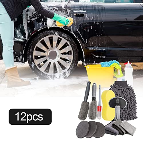 Set di 3 spazzole per ruote per auto - Spazzola per ruote con manico lungo, spazzole per pneumatici con manico corto, spazzole per ruote speciali, pulizia per auto professionale completa e pneumatici per motocicli
