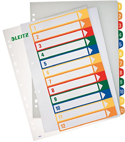 Leitz 1294-00-00 - Divisori per raccoglitore ad anelli, con spazio da scrivere, formato A4, 1-12 trasparente, 5 pz