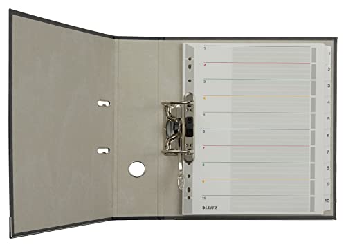 Contenuto della confezione: un formato A4 Leitz riscrivibile 1-10 iindex, extra largo, cartone, 43310000, larghezza x profondità x altezza: 23,8 x 0,3 x 29,7 cm, colore grigio/multicolore. Peso: 0,12 kg