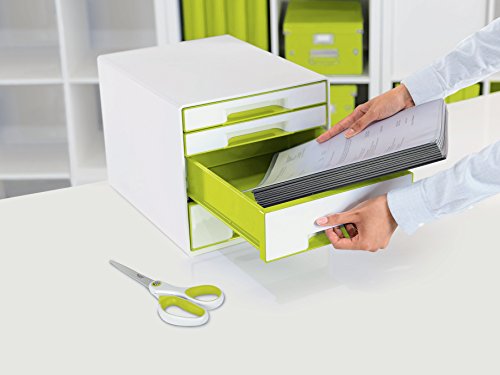 Leitz WOW Cube - Cassettiera 4 Cassetti, Formato A4 Maxi, 28.7 x 27 x 36.3 cm (A x L x P), Poliestere, Bianco/Verde Metallizzato