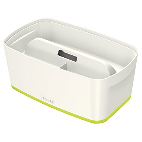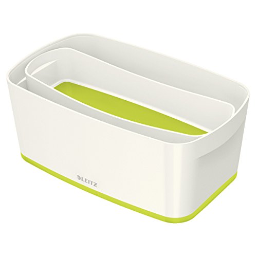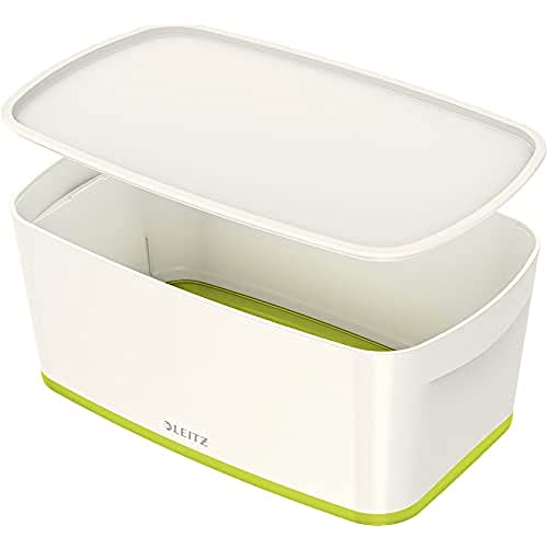 Leitz Contenitore MyBox con coperchio, Small, Ideale per casa e ufficio, 5 L, A5, Lucido, Plastica, Bianco/Verde metallizzato, 52291064
