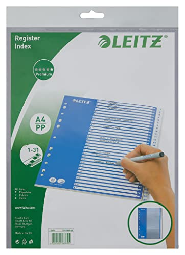 Leitz Indice A4 1-31, plastica resistente e cartone, blu/bianco