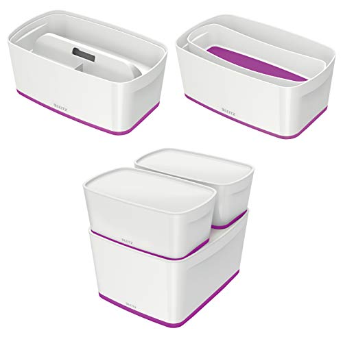 Leitz MyBox WOW Contenitore con Coperchio S, per Archiviare Accessori per Ufficio e Casa, Bianco e Viola, 52291062