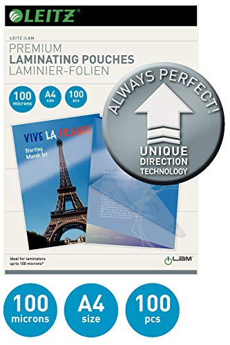 Leitz UDT Pellicole di Laminazione, A4, Premium (2 x 100 Micron), Confezione da 100, Transparente
